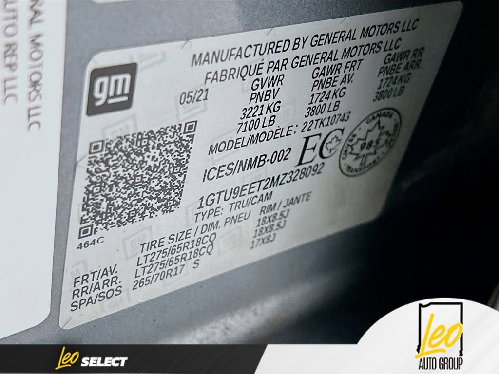 Odometer is 10758 miles below market average!2021 GMC Sierra 1500 AT4Steel Metallic 3.0L I6 4WD 10-Speed AutomaticCertification Program Details: This vehicle has completed our 121-point Leo Select inspection and meets our standard for well-maintained, high-quality pre-owned cars. Mechanical and safety items are addressed as needed, and cosmetic improvements may be performed according to our reconditioning guidelines. These vehicles represent the core of our inventory—solid condition, confidently reconditioned, and transparently documented so you know exactly what you're getting.10-Speed Automatic, 4WD, Jet Black With Kalahari Accents Leather, 12-Volt Rear Auxiliary Power Outlet, 120-Volt Bed Mounted Power Outlet, 120-Volt Instrument Panel Power Outlet, 2 USB Ports, 2 USB Ports (1st Row), 4.2 Diagonal Color Display Driver Info Center, 4G LTE Wi-Fi Hotspot Capable, Auto-Locking Rear Differential, Auxiliary External Transmission Oil Cooler, Body-Color Surround Grille, Color-Keyed Carpeting Floor Covering, Compass, Deep-Tinted Glass, Electric Rear-Window Defogger, Electrical Lock Control Steering Column, Floor-Mounted Center Console, Front Prem Floor Liners w/Removable Carpet Insert, GMC Connected Access Capable, HD Rear Vision Camera, Heated Driver & Front Outboard Passenger Seating, Heavy-Duty Air Filter, Hill Descent Control, Hitch Guidance, Hitch Guidance w/Hitch View, In-Vehicle Trailering App, Integrated Trailer Brake Controller, Keyless Open & Start, LED Cargo Area Lighting, Manual Tilt-Wheel & Telescoping Steering Column, OnStar & GMC Connected Services Capable, Power Door Locks, Power Front Passenger Windows w/Express Up/Down, Power Front Windows w/Driver Express Up/Down, Power Rear Windows w/Express Down, Preferred Equipment Group 4SB, ProGrade Trailering System, Rear Dual USB Charging-Only Ports, Rear Prem Floor Liners w/Removable Carpet Insert, Rear Wheelhouse Liners, Red Recovery Hooks, Remote Vehicle Starter System, Spray-On Pickup Bed Liner w/AT4 Logo, Steering Wheel Audio Controls, Theft Deterrent System (Unauthorized Entry), Trailering Package, Ventilated Driver & Front Passenger Seats.**LEO CHEVROLET - LOCATED AT 4105 W 96TH ST, INDIANAPOLIS, IN 46268* Take advantage of our VIP Test Drive Experience by contacting us at 317-872-3315 to schedule a test drive. Leo Chevrolet delivers a modern, hassle-free buying and service experience built around transparency, trust, and making it easy for every customer who walks through our doors. We are proud to serve guests in Indianapolis, Zionsville, Carmel, Fishers, Noblesville, Greenwood, Avon, and all surrounding Central Indiana areas.Additional $251.05 doc fee, tax, title, and registration are not included in the advertised sale price. We take every effort to ensure the advertised pricing information is accurate, however, we recommend you contact the dealership to confirm pricing information and inventory.